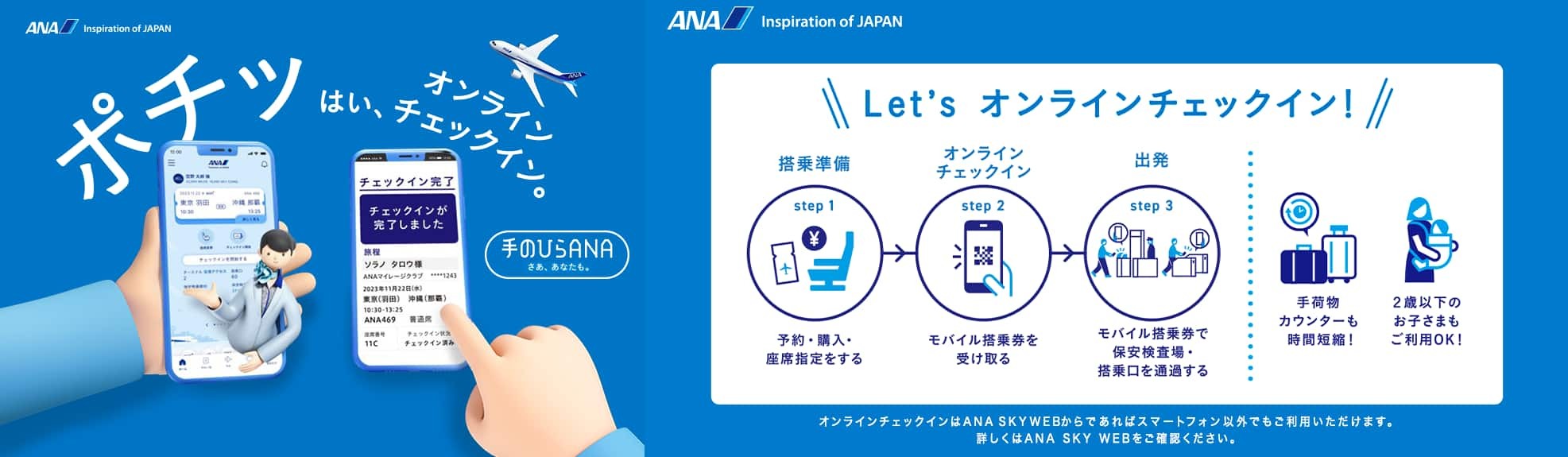 ・オンラインチェックインおよび取り消し操作は、ANA国内線予約・案内センターでは承れません。お客様ご自身でお手続きください。