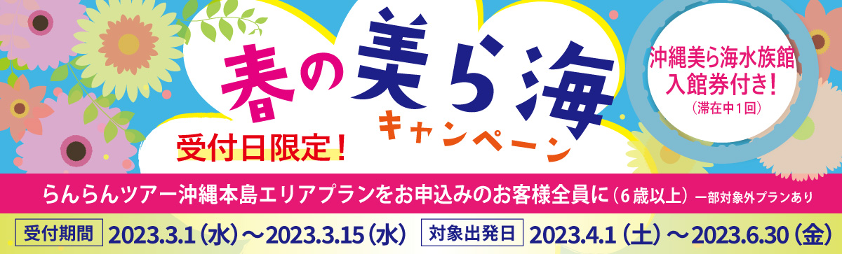 2023年6月16日(金)~2023年7月14日(金)受付で沖縄本島エリアプラン※を新規予約のお客様全員(6歳以上)に「沖縄美ら海水族館入館券(滞在中1回)をプレゼント!!」
