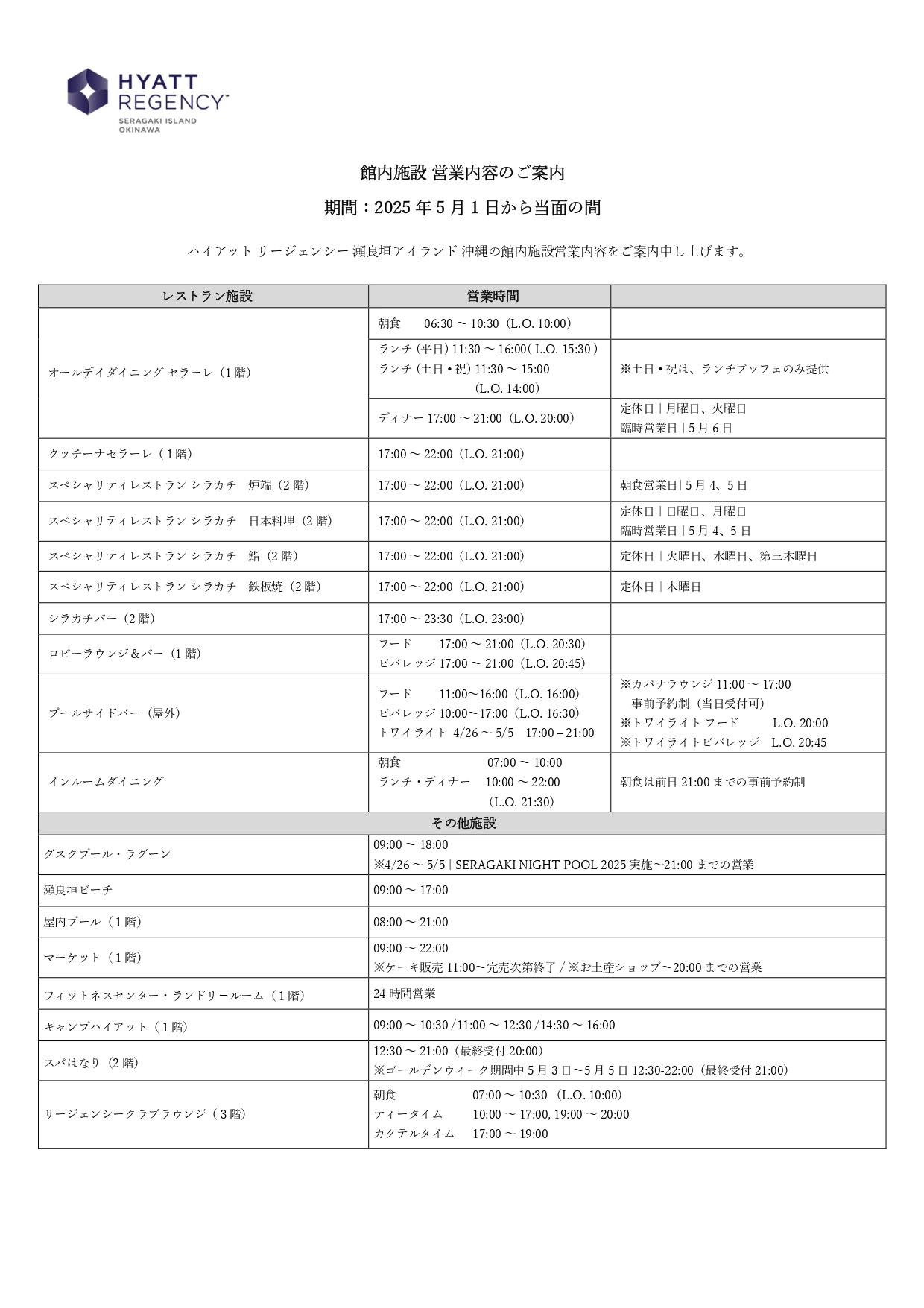 | Shop | ホテル内ショップ(朝市、コンビニ、ビーチショップを除く) |
