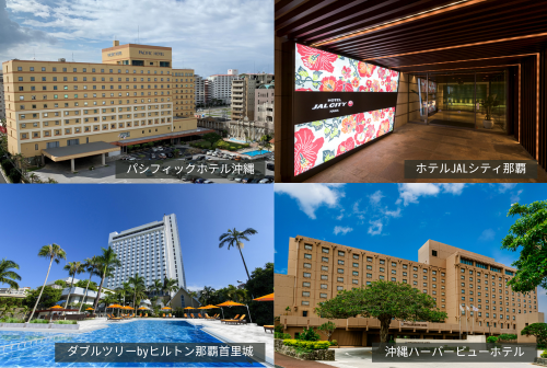 最終泊は那覇市内の4つのホテルからお選びいただけます。※ホテルにより追加代金がかかります