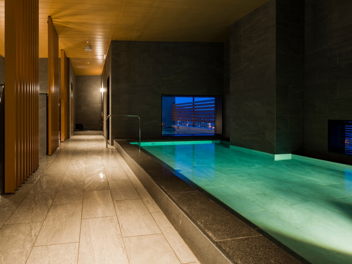 ゆったりと”ととのう”お時間をお過ごしください。最上階の大浴場からは、眼下に石狩湾をご覧いただけます。