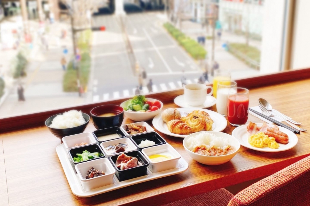 光が差し込む大きな窓から見える秋葉原駅周辺を眺めながら、ホテルキッチンで手作りした和洋のお料理をご用意しています。