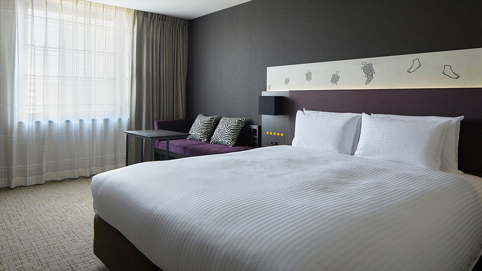 米国の人気ベッドメーカー、サータ社のベッドは幅123cmのゆったりとしたサイズで寝姿勢をサポートする造りとなっており旅のつかれを癒します。加湿機能付空気清浄機はもちろん、アクセサリートレーやアイロンなど、身だしなみを気に掛ける旅行者にとって便利なアイテムも備わっております。