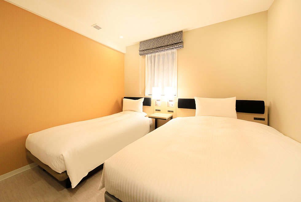スタンダードツインルームでは、ベッド幅が異なりますので、予めご了承ください。(幅140cm×1台、幅92cm×1台)