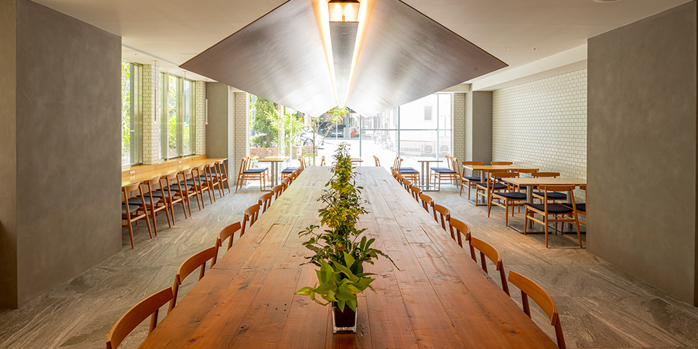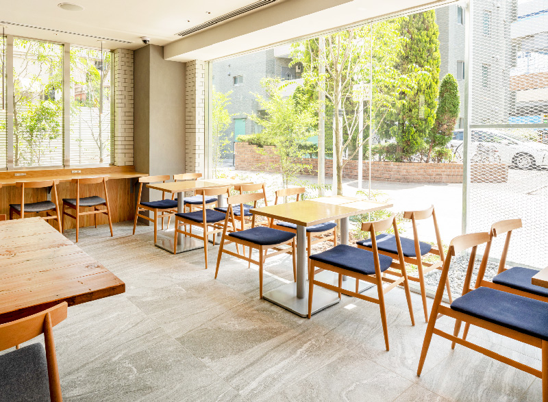 1階にあるカフェスペース「EXPRESS Café」は、木の質感を大切にした、ぬくもりと解放感のあるスペースです。