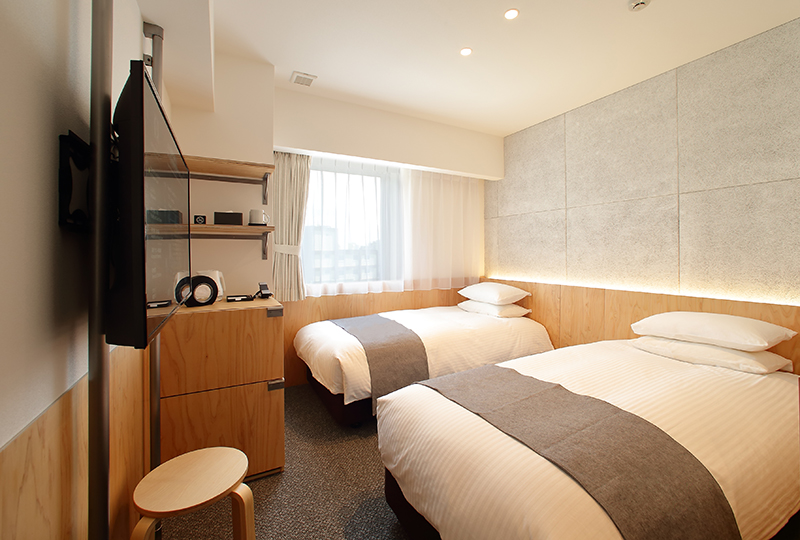 コンパクトサイズのツインルーム。ベッドは快適な睡眠をサポートするエアウィーヴのマットレスを採用。ご家族やご友人とお過ごしください。