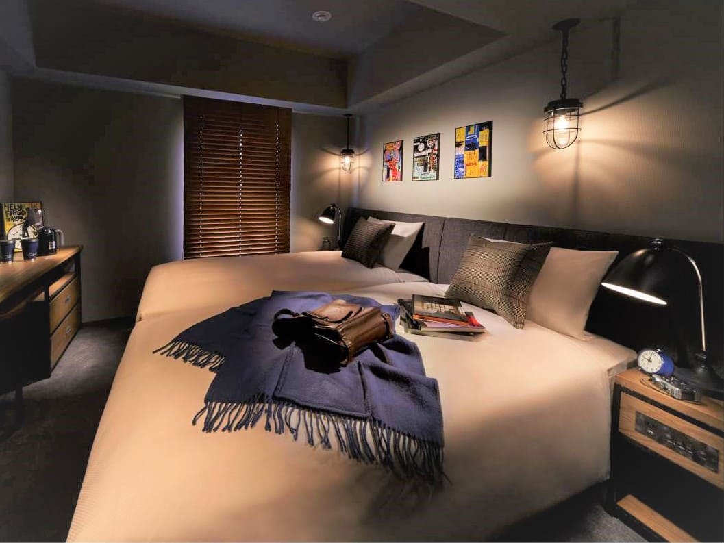 ベッド幅110cm、2台のベッドを寄せて並べたハリウッドスタイルのお部屋です。ツインルームは全室神田川沿い♪モダレットルームと同様、シューズオフスタイルの客室ですので、ご旅行やライブ後のお疲れを癒してください。