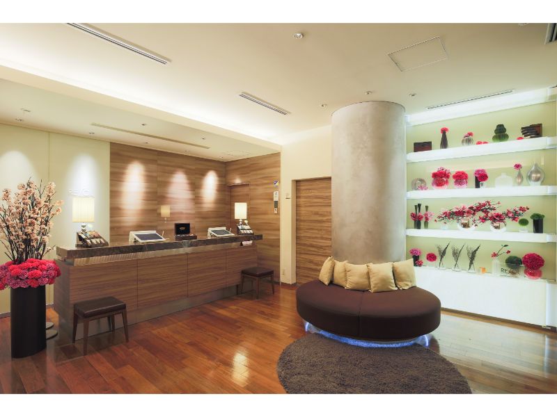 ビビッドな色のお花やアロマ香るロビーでゆったりチェックイン