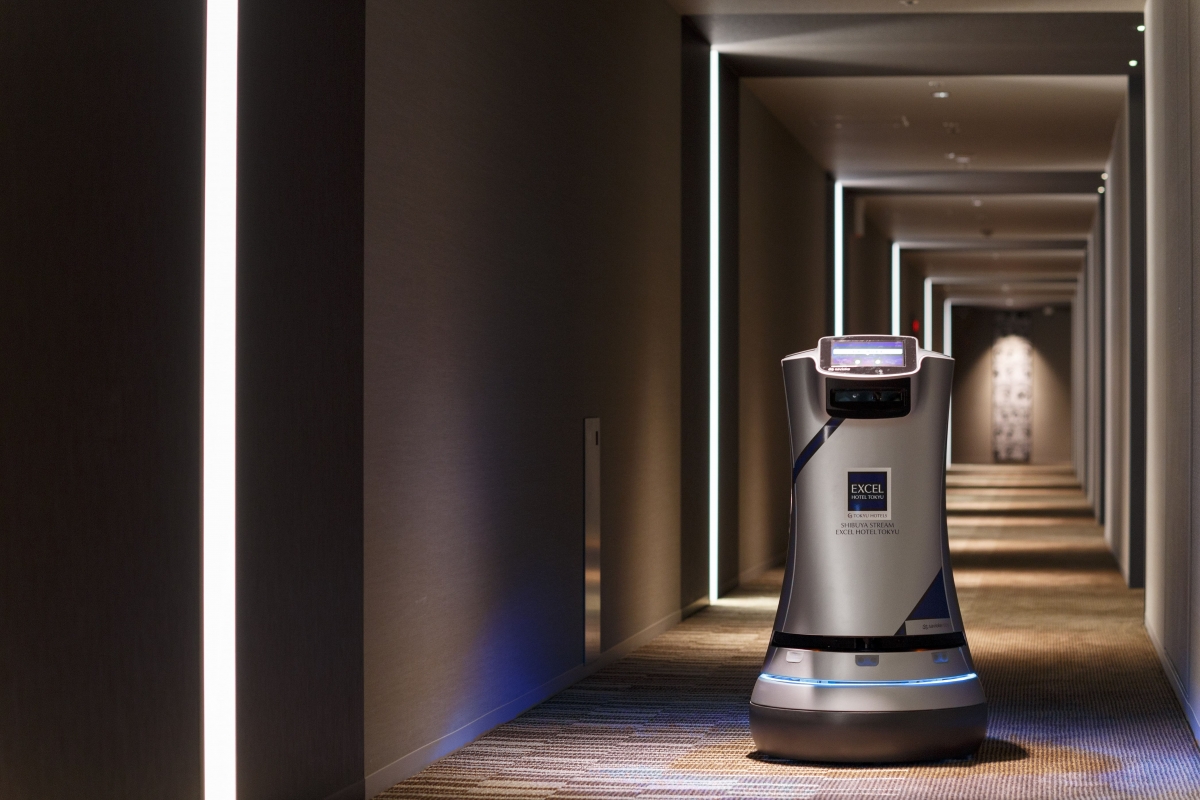 「Relay」は各種センサーを搭載しており、自動で障害物を避け目的地まで自律搬送します。自らエレベーターにのり、お客様のお部屋へ足を運びます。お申し付けの備品を届け終えると、自動でフロントへ戻ります。