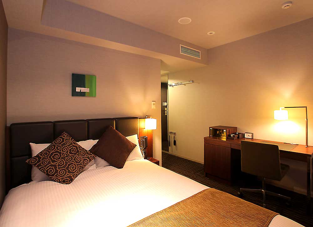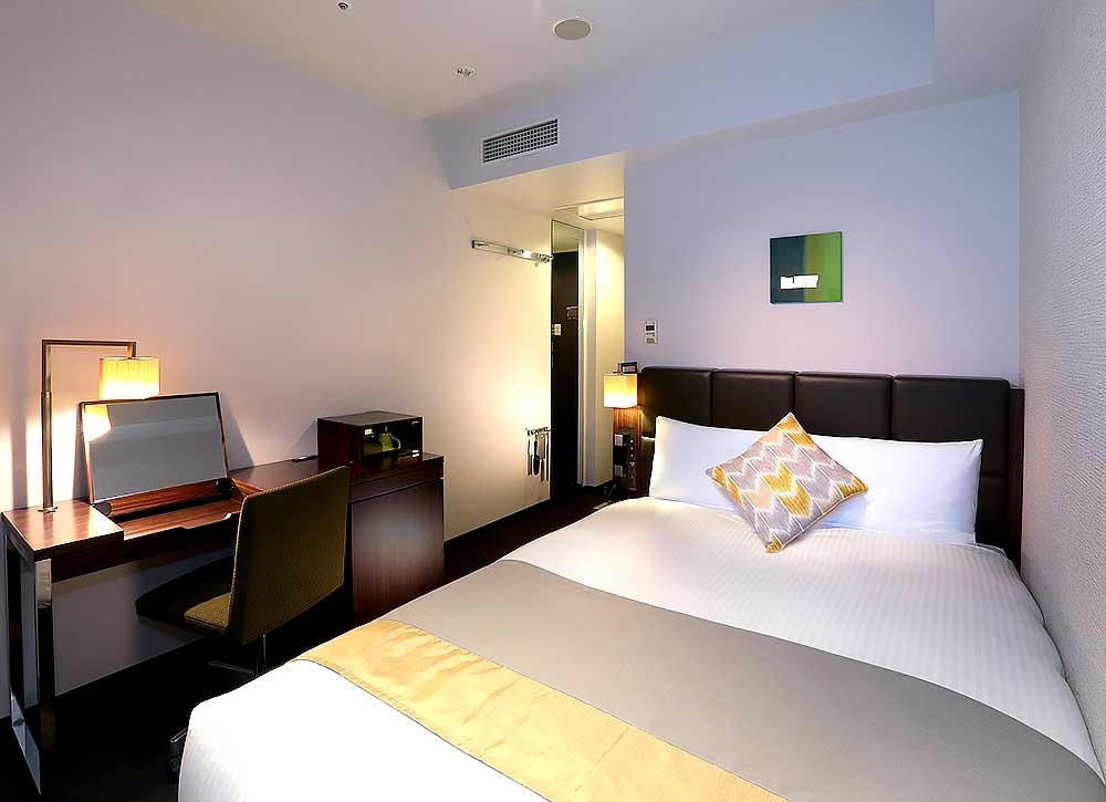 ベッド幅140cmのセミダブルサイズベッドを設置し、機能的で必要なものが揃っている客室です。ビジネスパーソンをしっかりサポートいたします。
