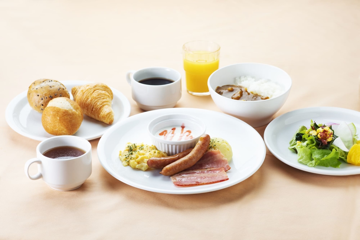 ブッフェ台にはサラダ、パン、人気のカレーをご用意しています。