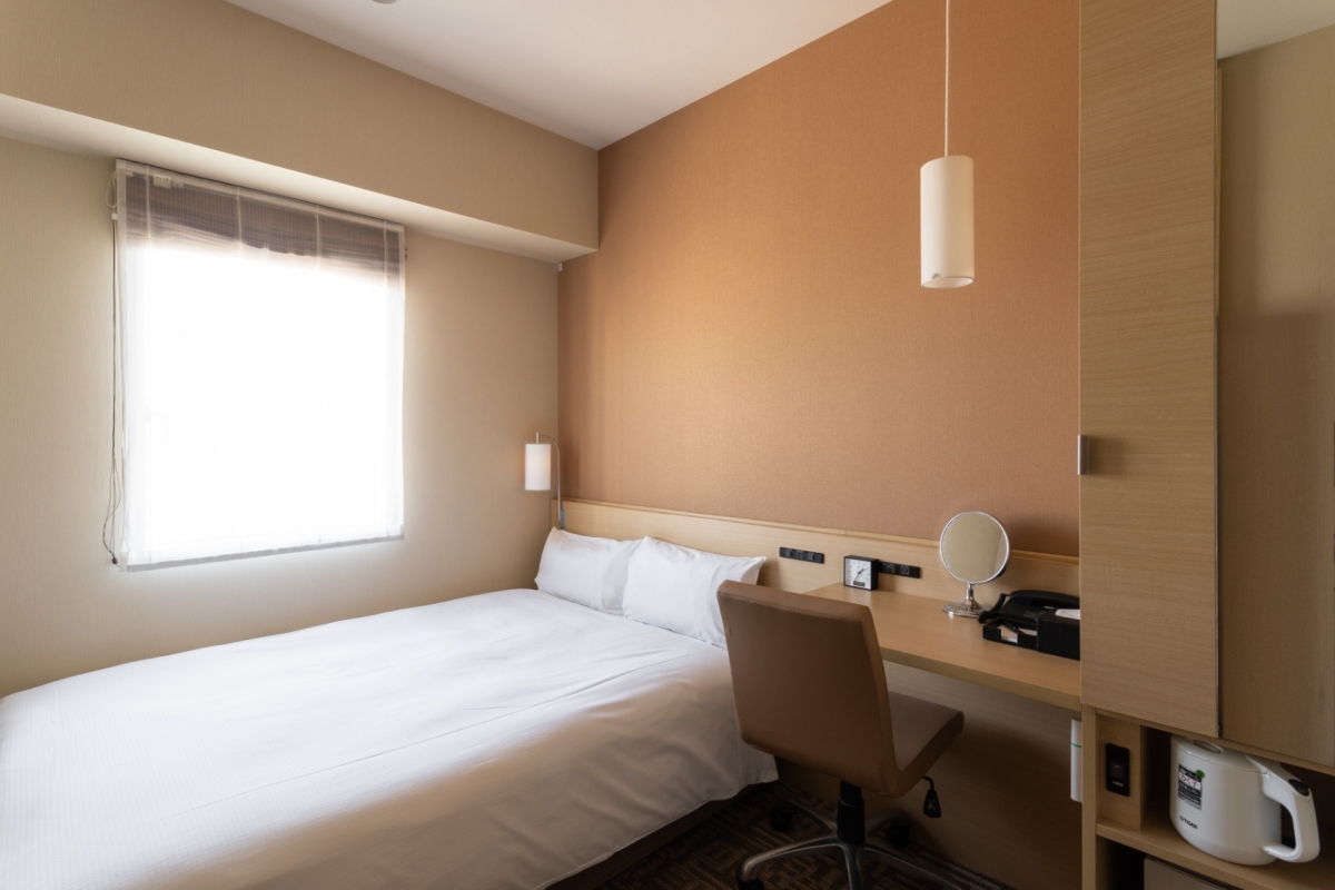 1名様用のシングルのお部屋ながらダブルサイズのベッドでゆったりお休みいただけます。当館のスタンダードなシングルで、ビジネスにも観光にもご利用いただけます。
