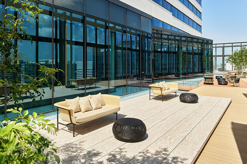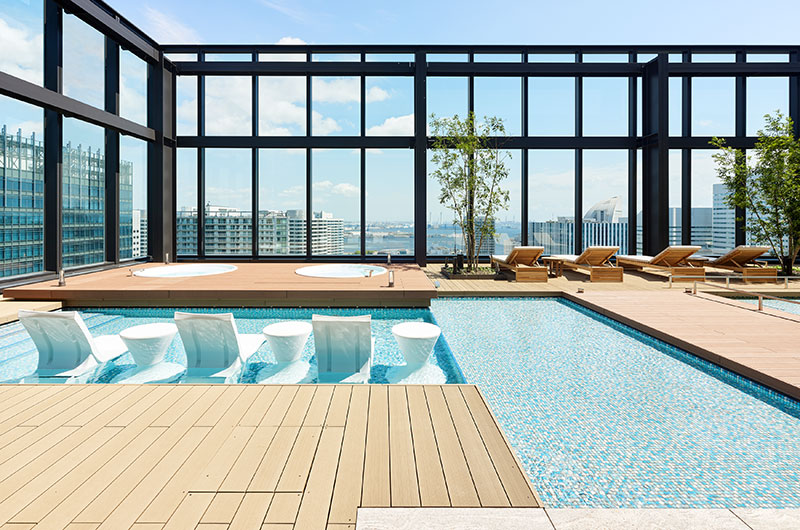 洗練されたライフスタイルを求めるカップルや女性のゲストにお楽しみいただけるよう屋内外2ヵ所のプールと屋外ジェットバスを配置。