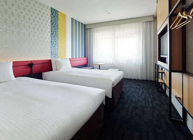 お部屋の広さは22㎡、2~3名様でご利用いただける広めのツインルームでゆったりおくつろぎいただけます。