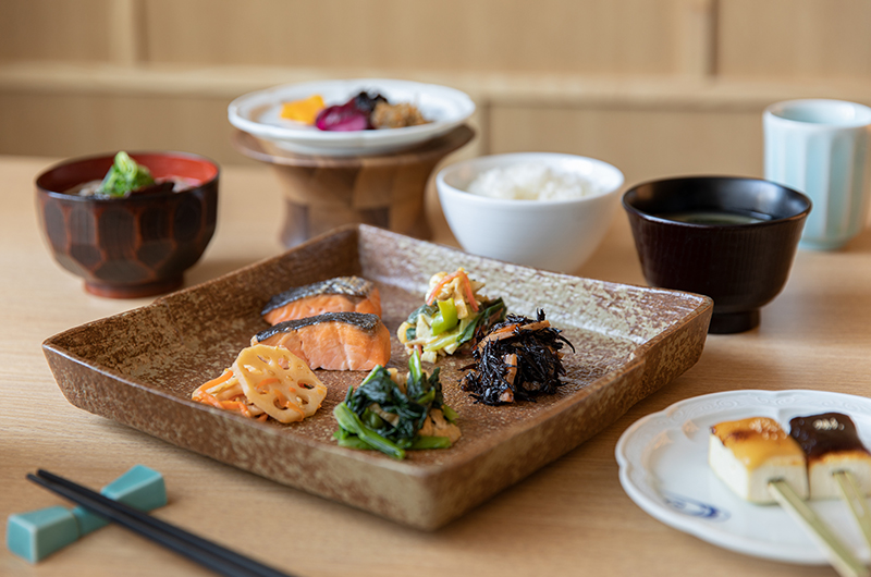 焼き魚や季節の野菜、漬物など、日本の朝ごはんに欠かせないメニューを