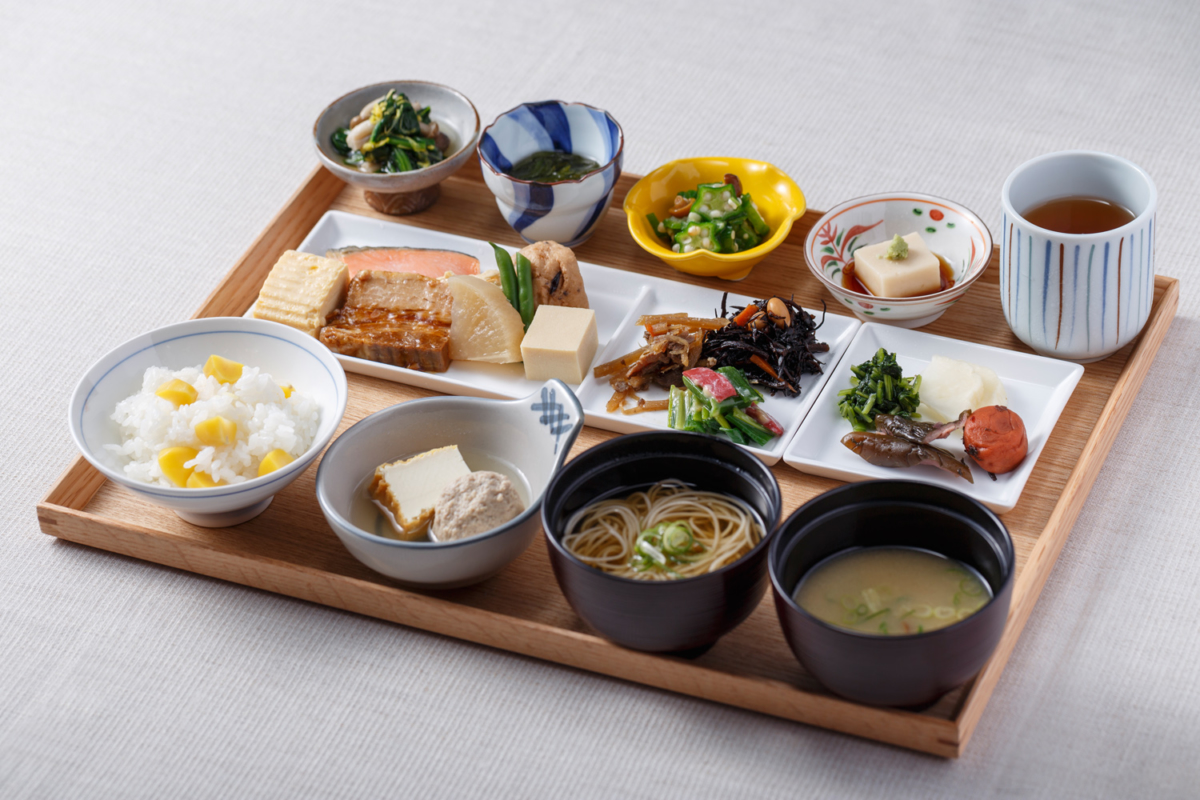 小鉢の種類も豊富で旬の野菜もたくさん味わえる欲張りビュッフェです。洋食が好みの方のためには、パンやスクランブルエッグなどのメニューも揃えています。また、料理監修に日本料理界の巨匠、神田川俊郎氏を迎え、料理人が一つ一つ丁寧に仕上げたおばんざいをビュッフェスタイルで提供しています。