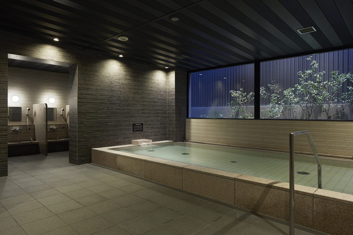 1階には宿泊者専用の大浴場をご用意しました。人工炭酸泉と和モダンな空間でお愉しみください。