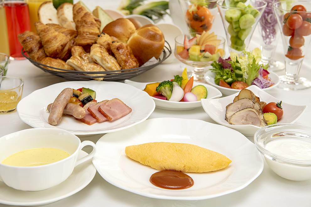 新鮮な卵と自家製ジュースにこだわった洋食メニューと旬のお魚と県産米が自慢の和食メニューを始め、岡山の名物料理や新鮮な野菜や果物をお楽しみいただけます。
