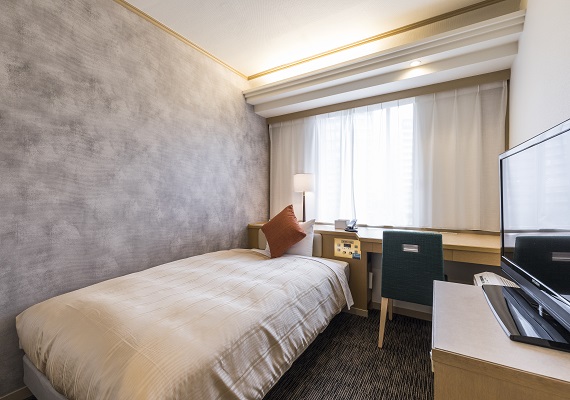 広さ13.7㎡のお部屋にベッド幅120cmのセミダブルサイズベッドをご用意。