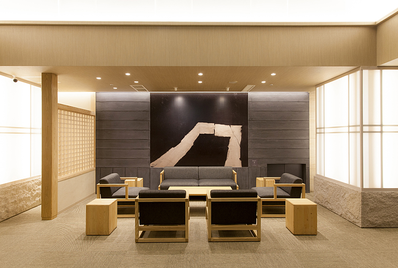 熊本を代表する画家、坂本善三氏の作品である「城 1981」を飾ったエントランス。