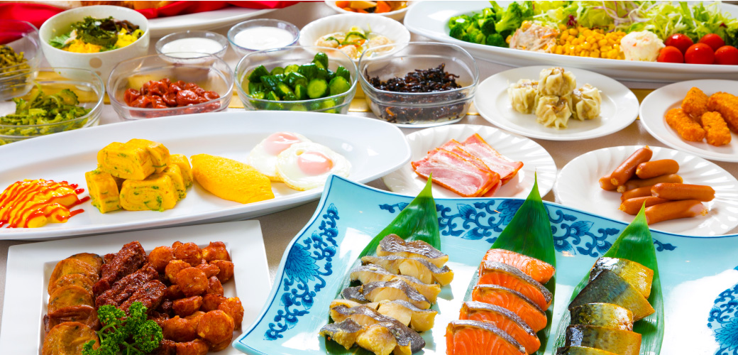 ご朝食は約80種類の豊富なメニューの和洋バイキング