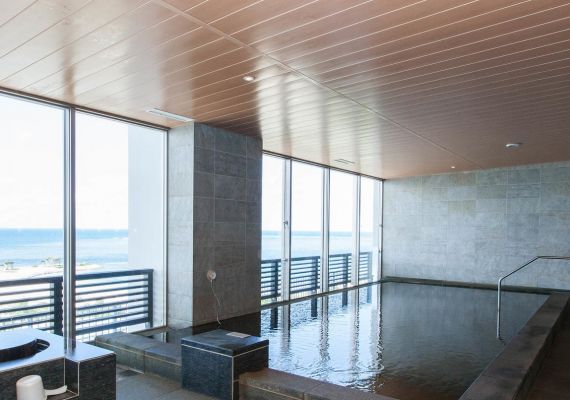 湯けむりの向こうに広がる、エメラルドグリーンの海と水平線にそびえる伊江島の景色。地下1,500m、約2億年以上前の地層から湧き出る天然温泉が、ゆったりと身体を癒します。