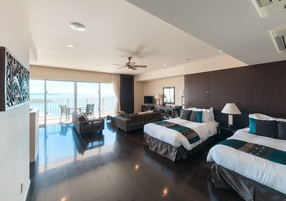 沖縄屈指の西海岸リゾートエリアに位置し、全室オーシャンビューの客室は平均70㎡とゆとりある空間を実現。ベッドルーム、リビングルーム、バスルーム、ドレスルームはそれぞれ独立していきます。さりげなく行き届いたサービスと、目の前に広がる碧い海がくつろぎへと誘います。