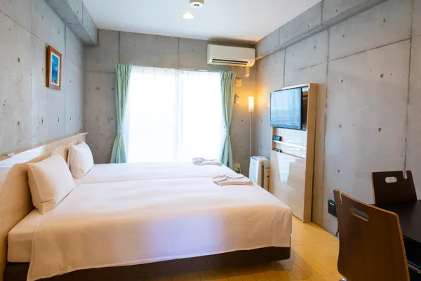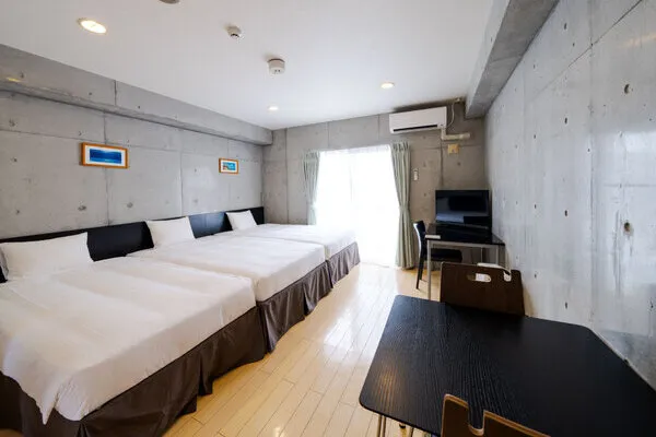 那覇ウエスト・インは、デザイナーズホテルとして『自宅のような寛ぎ』をコンセプトに、カジュアルでコンクリート打ちっぱなしがクールさと清潔感を演出。お部屋はバスルーム・トイレが独立しており、バルコニー付きが魅力的!機能性にこだわったデザインホテルが誕生です。