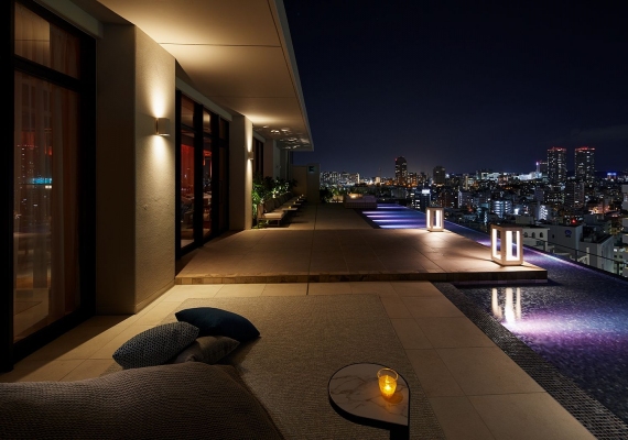 ホテル最上階に広がる、那覇市内でも希少なルーフトップバーラウンジ。木を基調とした落ち着きのある空間で、那覇のまちを一望する開放的な屋外テラスには水盤やファイヤープレイスを設けリゾートの高揚感を高めます。お酒と共に夜景を望む大人のためのバーとしてご利用いただけます。