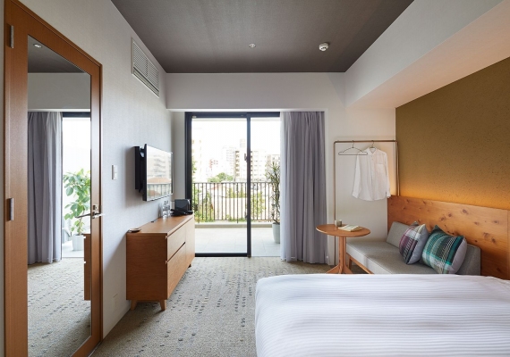 コンパクトなダブルルームを中心に、那覇のまちを見渡せる3面ガラスに囲まれたスイートルームやグループでも利用できる4名用の客室まで、全11タイプ221室をご用意します。