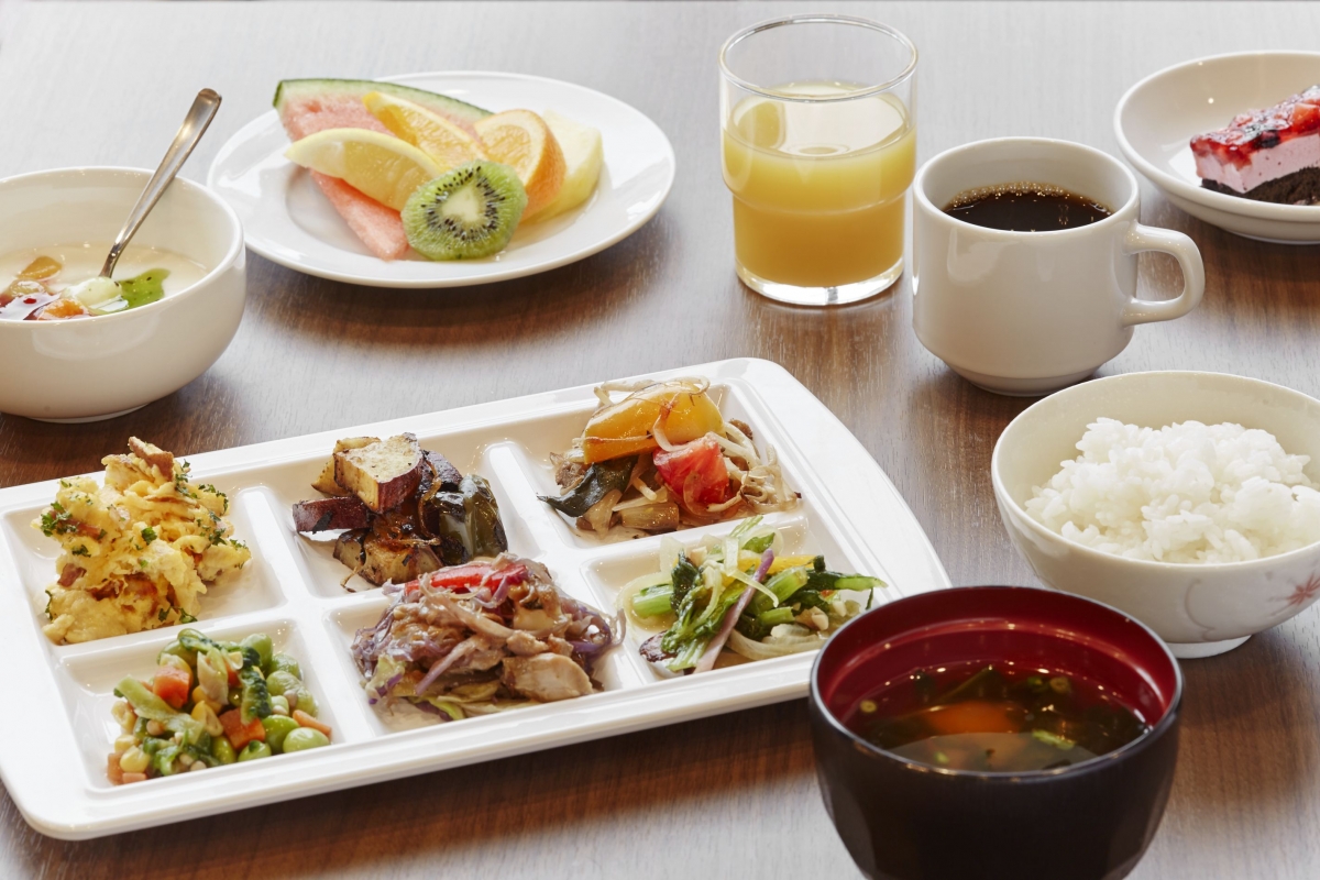ステーションウイング3階のカフェビクトリアにて、あたたかな朝日が差し込む開放的な空間で、沖縄ならではのアメリカンスタイルのブッフェをどうぞ(朝食メニューは季節のお料理をご用意しております)。