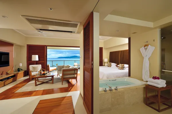 クラブデラックスルームの快適さはそのままに、テラスから夕景を臨むサンセットサイドの客室。隣接するバニァンビレッジの赤い瓦屋根やなだらかに続く岬の風景、噴水が美しい広場などの景観もお楽しみいただけます。