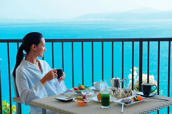 美しい名護湾を望むオーシャンビュールームで涼やかな潮風を浴び優雅にルームサービスの朝食をお楽しみください。