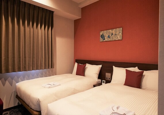 ベッドは全室120㎝セミダブル幅で広々ご利用いただけます。ベッド同士をくっつけるハリウッドスタイルなど、お気軽にお問い合わせください。