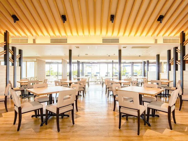 ヴィレッジ内の〈レストラン コーラルブルー〉は、宮古島ならではの食材を使った料理や郷土料理を自由にお愉しみいただけるブッフェスタイル。赤ちゃん用の離乳食コーナーや、お子様用の椅子も数多くご用意しており、ご家族でゆったりとお召し上がりいただけます。朝も夜も、笑い声に満ちた食事の時間をご堪能ください。