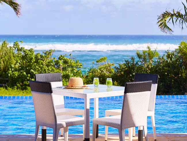 水深が30cm、60cm、120cmと3タイプになっています。南国の日差しのなか、芝グリーンと宮古ブルーの景色をプールから、どなた様もお楽しみいただけます。