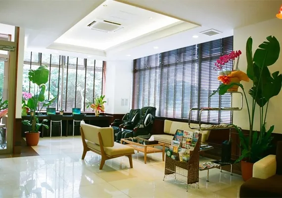 宮古島の暖かな光が差し込む開放的なロビーでは、季節ごとの植物がお出迎え致します。