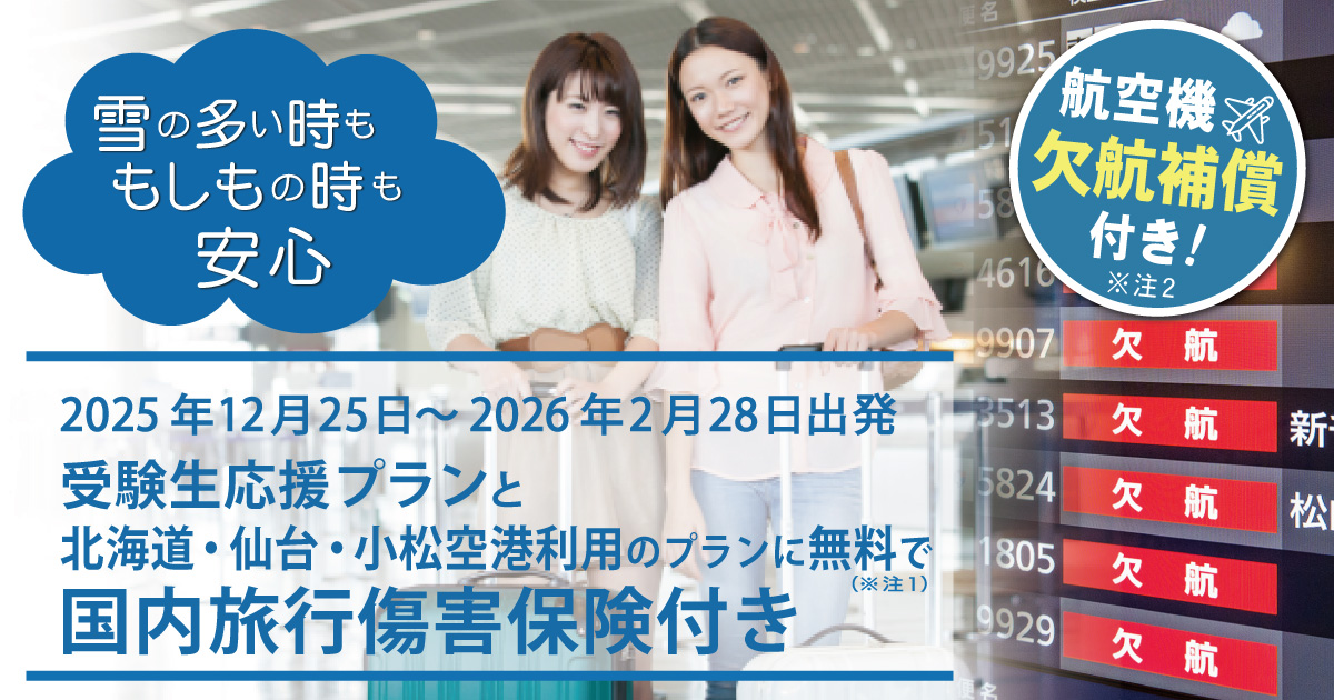 【対象プラン】 受験生応援プラン、北海道・仙台・小松空港利用のプラン