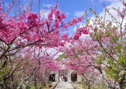 メモ 毎年1月下旬には世界遺産の今帰仁城跡で、日本で一番早い桜まつり「今帰仁グスク桜まつり」が開催されます。日没後は桜の木とともに城壁もライトアップされ、日中の鮮やかなピンクとは一味違った魅惑的な情景を楽しむことができます。 |
