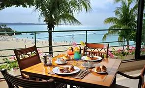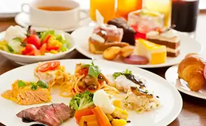 沖縄料理から和洋中まで多彩なメニューが楽しめる人気のビュッフェ。開放感あふれるリゾート空間で、海を眺めながら贅沢なランチタイム♪