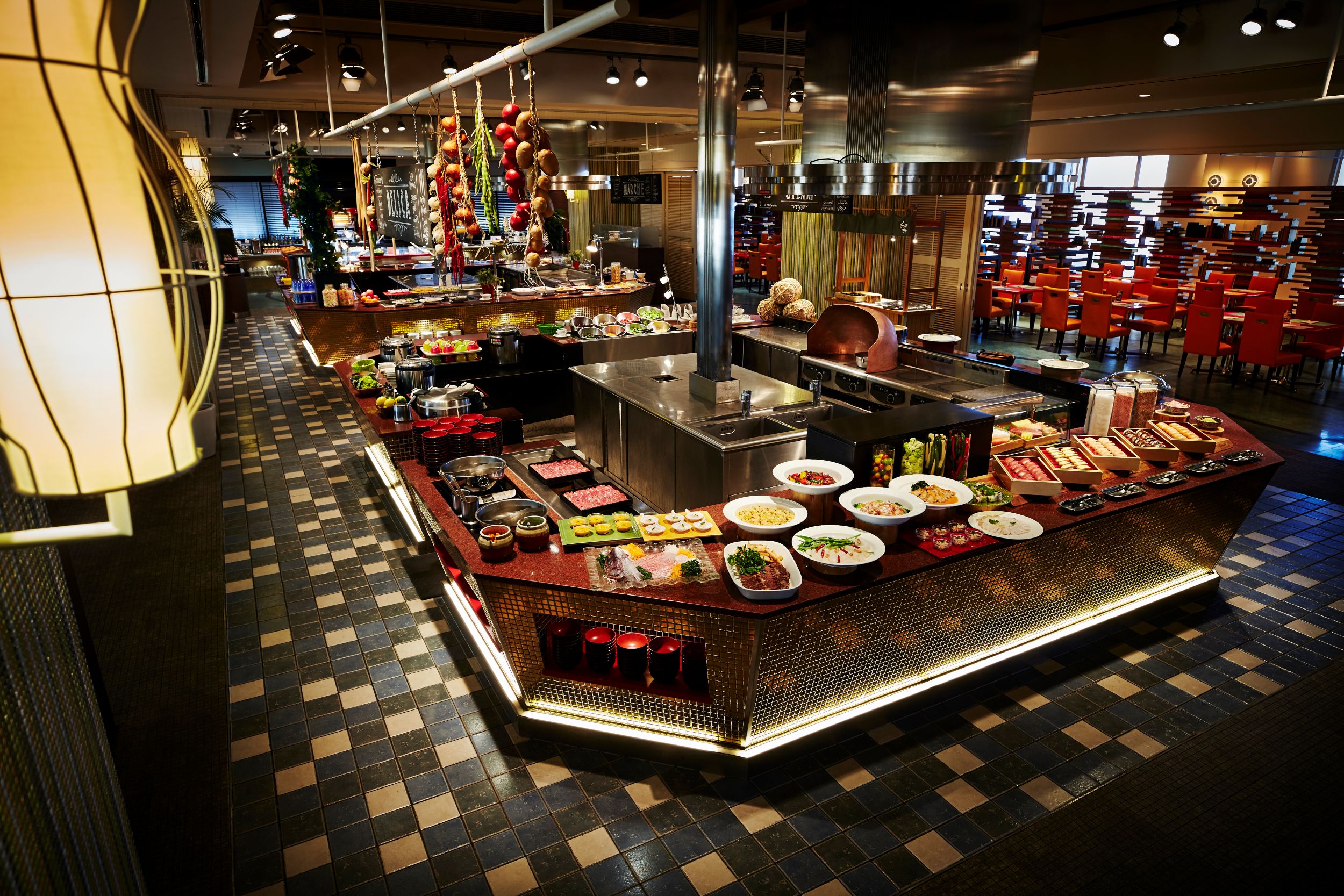ポートダイニング リコリコは「Treasure Hunting」をコンセプトに、航海する船や島をイメージしたレストラン。エントランスには航海図と煌めく星座、金色に輝くビュッフェカウンターには宝物に見立てた料理が並びます。「食の都 大阪」にふさわしく、“食の楽しさ”を盛り込んだ、シーズンごとのフェアメニューや、まるで宝石箱の中の宝石のようにずらりと並んだ可愛らしいデザートなど、バラエティ豊かなお料理をお楽しみください。