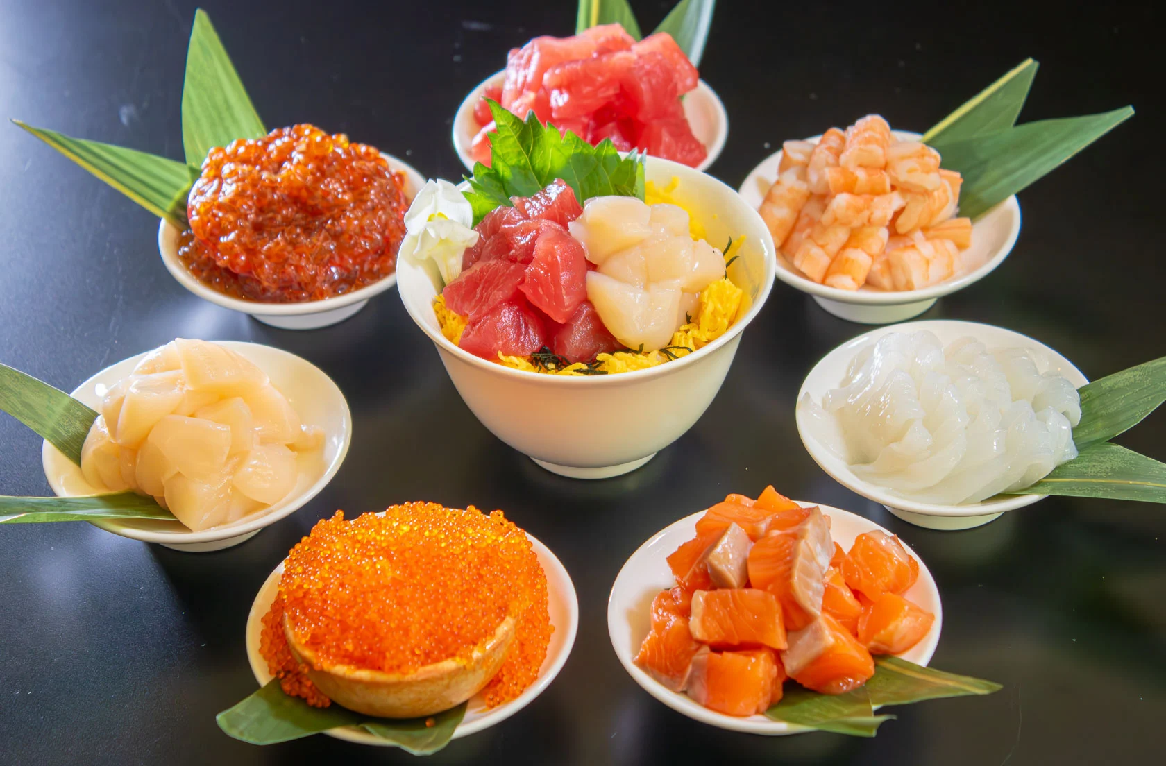 蒸し蟹やアワビ、海鮮丼などの海の幸に加え、沖縄県産和牛のシチューやラム料理