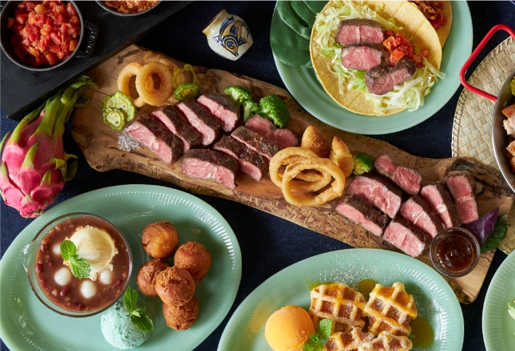 Morning Grillでのビーフステーキやハンバーグ、グリルチキンの食べ放題や、沖縄に来たら一度は食べたい郷土料理、沖縄スイーツなど多数ご用意しております。