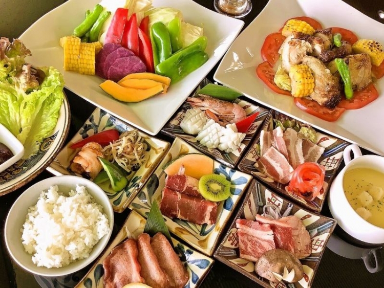定番の牛カルビ、リブロース、豚バラ、特製ローストチキンも食べ放題!煙が出ない無煙ロースターでお肉もヘルシーにお召し上がりいただけます。