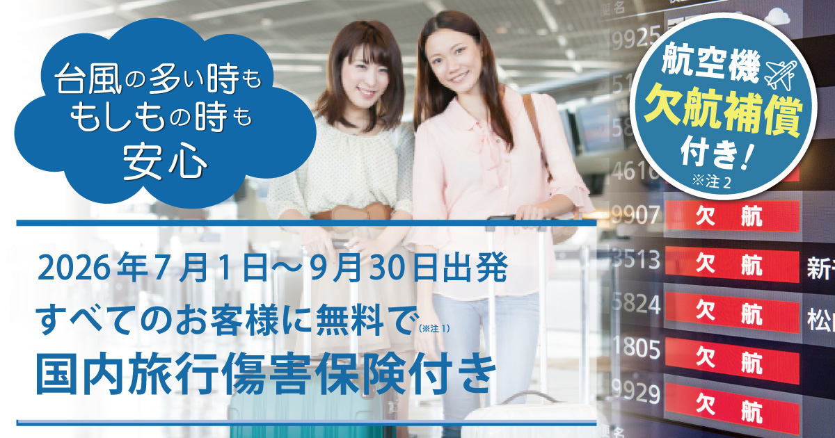 - 地震・噴火・これらによる津波による欠航・遅延が発生した場合は補償対象外です。