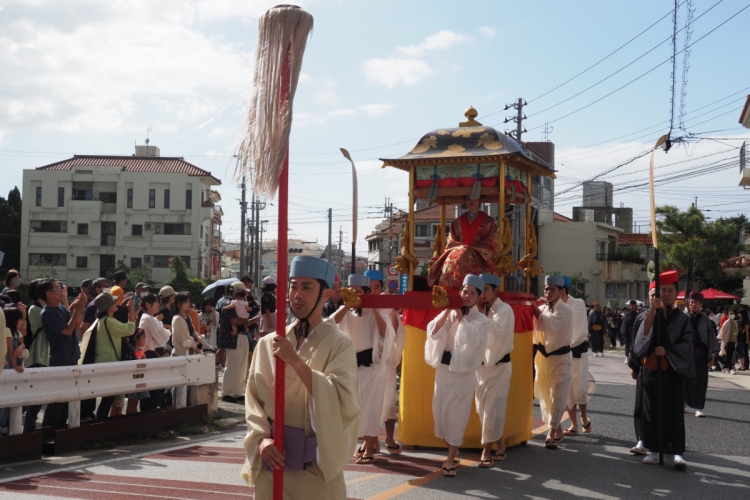 古式行列は、国王、王后、聞得大君、摂政および三司官を含めた琉球王朝時代にタイムスリップする一大歴史絵巻です。