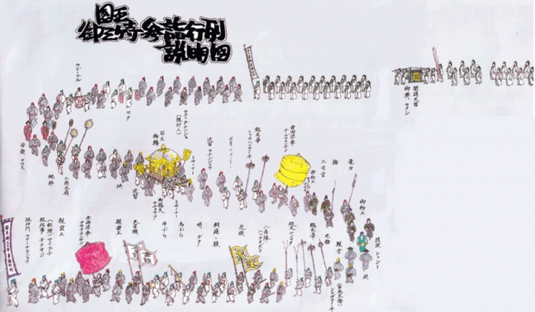 「那覇大綱引き」「那覇ハーリー」と並ぶ那覇三大祭りの一つ、「琉球王朝祭り首里」の最大の呼び物ー古式行列は、王国時代に国の安泰と農作物の豊作を祈願するために、正月の三日、国王が馴染みの深い三つのお寺、すなわち近在の円覚寺、天王寺、天界寺を参詣する初行幸の儀式「国王御三ヶ寺参詣行列」をできるだけ忠実に再現したものです。