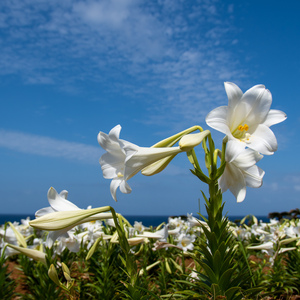 沖縄本島北部の本部港からフェリーで約30分。伊江島ゆり祭りは、100種類の世界のユリと100万輪の純白のテッポウユリの祭典です。青い空と海に映える真っ白なゆりの絨毯は圧巻の景色です。潮風に漂うゆりの甘い香りの中、記念写真はいかか。那覇市周辺から日帰りバスツーも出てますので、要チェックです👇