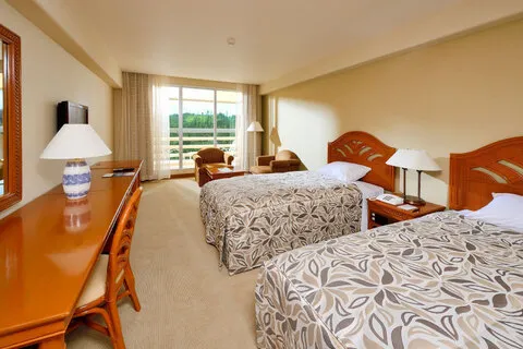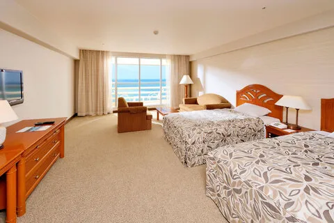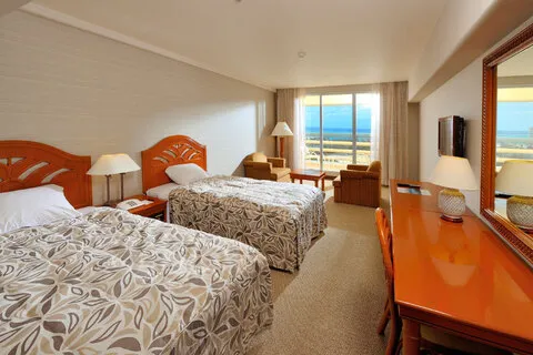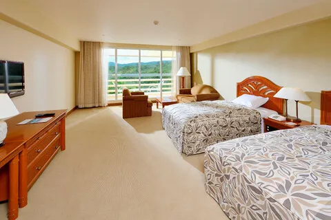 ツアーで利用する基本のお部屋タイプは、洋室スタンダード(1-3名利用/グリーンビュー)と洋室デラックス(4名利用/グリーンビュー)。追加割増料金でオーシャンビューのお部屋に変更も可能(ツアーお申込み画面で選択)。
